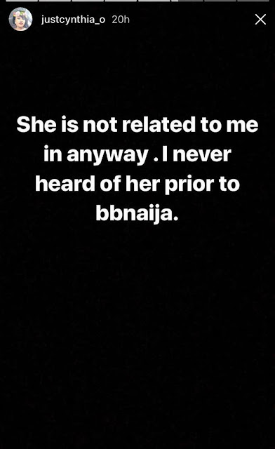Wife of BBNaija season 3 host, Cynthia Obi-Uchendu, has rebuffed reports that one of the housemates, Cee-C is related to her.
