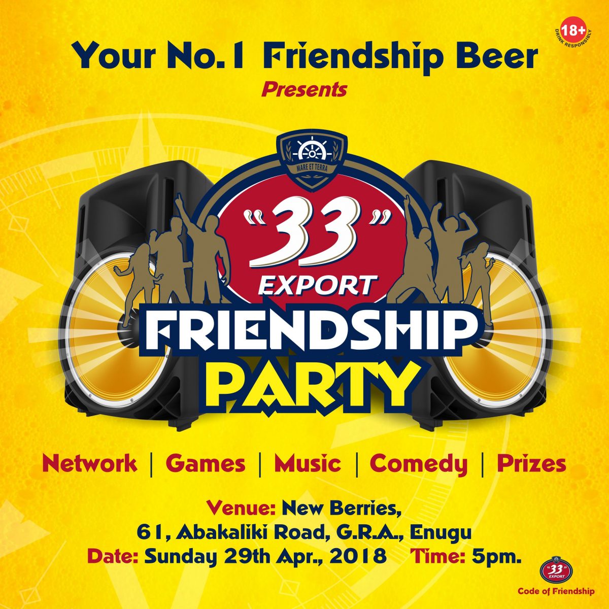 “33” Export Lager Beer, Nigeria’s no.1 friendship beer, is set to storm Ikorodu and Onitsha with its’ popular Friendship Experience Party, which is focused on sharing the values of friendship and creating opportunities for its numerous consumers to bond and create memorable moments. The party which aims to create bonds between the brand and its consumers is happening on the 20th April 2018 at F1 Sports Bar 72/78 Beach road Ikorodu, and on the 22nd April 2018 at Sweet Garden, 7, Park Road GRA, Onitsha. It promises to be mind-blowing with lots of fun, thrilling and exciting moments to look…