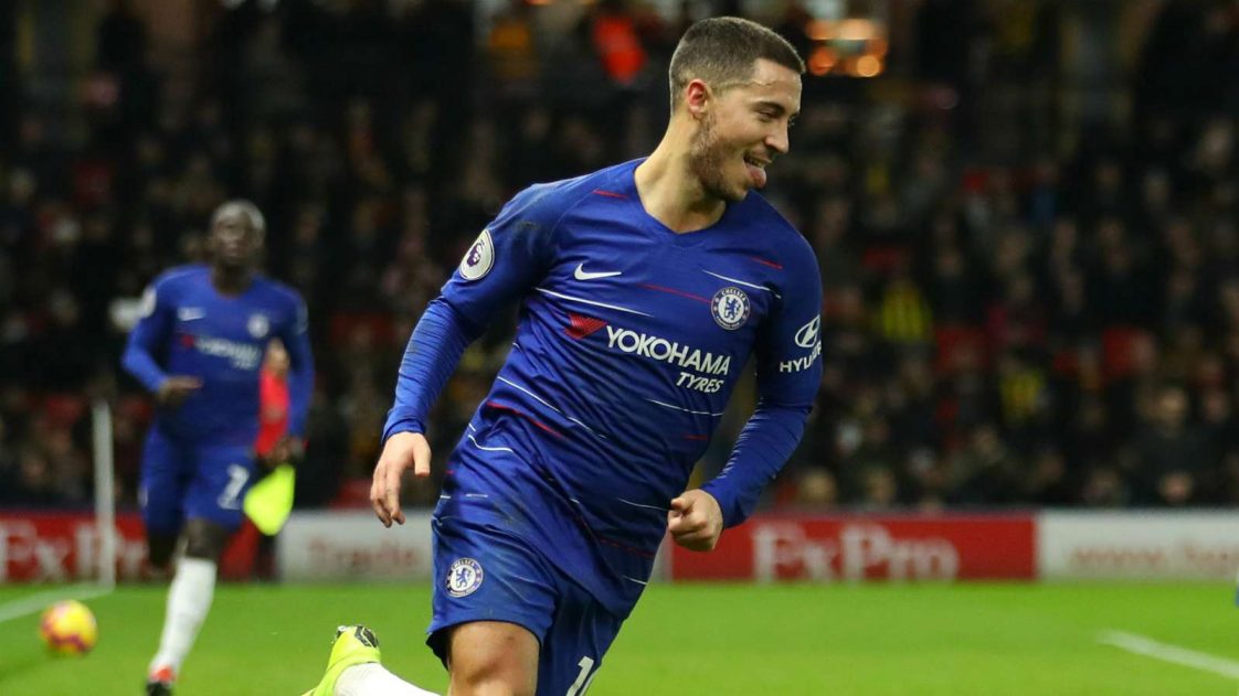 Eden Hazard reached a century of goals for Chelsea to inspire them to a 2-1 victory over Watford in Wednesday’s Premier League clash. The Belgium star moved onto 101 for the Blues, striking either side of Roberto Pererya’s stunning volley to seal all three points for Maurizio Sarri’s side at Vicarage Road. The result puts Chelsea back in the driving seat in the race for the top four, with Arsenal having dropped points earlier in the day and champions Manchester City now only four points ahead in third place. Willian dribbled past Ben Foster and shot wide with the best…