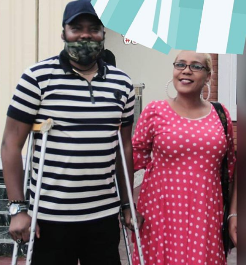 Nigerians on Instagram have reacted after photos of the man who proposed to veteran actress, Shan George surfaced on the internet. If you recall, the 50 year old actress announced her engagement to the new man after 2 failed marriages. In the picture that is presently going viral on social media, the light-skinned actress was seen standing beside a man who was walking with the aid of crutches. There are speculations already that the man has just one leg, hence the reason why he uses crutches to move about.